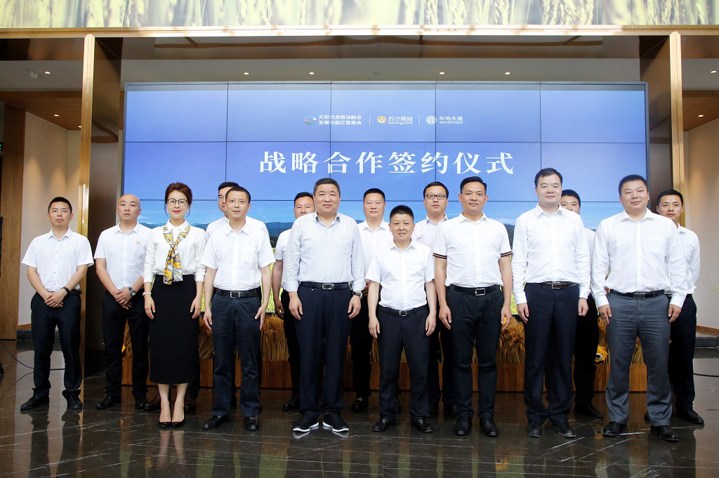 2019年5月18日,天府優(yōu)質(zhì)糧油融合發(fā)展功能區(qū)管委會(huì)、蘇寧易購、華地永盛戰(zhàn)略合作簽約儀式在華川集團(tuán)天府良倉農(nóng)業(yè)總部隆重舉行。中共崇州市常委、總工會(huì)主席王成龍、天府優(yōu)質(zhì)糧油融合發(fā)展功能區(qū)管委會(huì)黨工委副書記廖慶、蘇寧易購集團(tuán)西南地區(qū)執(zhí)行副總裁兼成都地區(qū)管理中心總經(jīng)理?xiàng)钊f波、四川蘇寧易購超市公司副總經(jīng)理尹小璐等代表出席本次活動(dòng)。華川集團(tuán)黨委委員、副總裁楊開榮、華地永盛農(nóng)業(yè)發(fā)展有限公司總經(jīng)理鄭舒姍對(duì)出席本次活動(dòng)的代表嘉賓表示熱烈歡迎。