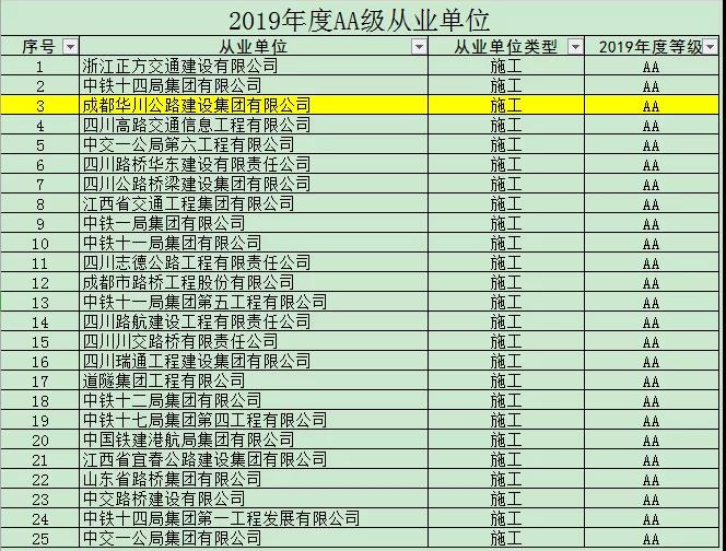 四川省交通廳于6月28日對(duì)2019年四川省公路施工企業(yè)信用評(píng)價(jià)結(jié)果進(jìn)行公示,集團(tuán)公司再次榮獲“AA”級(jí)