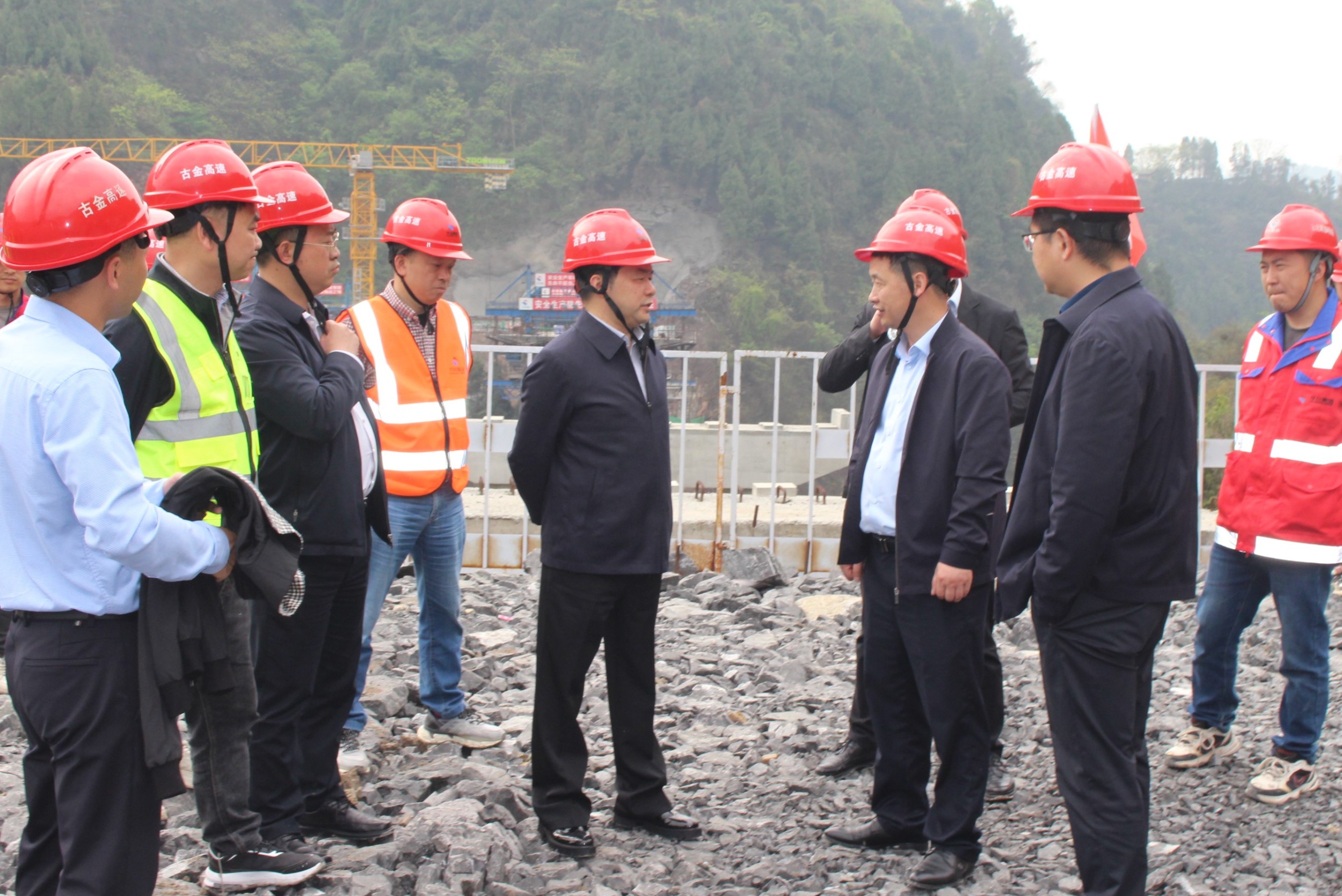 為貫徹黨的二十大精神,落實調(diào)查研究之風,著力解決項目建設堵點難點,凝心聚力抓實生產(chǎn)建設,4月11日,集團董事長、總經(jīng)理、黨委書記謝應文到古金項目調(diào)研指導,深入了解項目復工復產(chǎn)推進情況,協(xié)調(diào)解決存在的困難問題。他強調(diào),要按照上級單位安排部署,堅決落實好全面復工復產(chǎn)要求,高效統(tǒng)籌項目管理,高標準推進項目建設,堅定信心、鉚足干勁,全力保障年底通車任務。