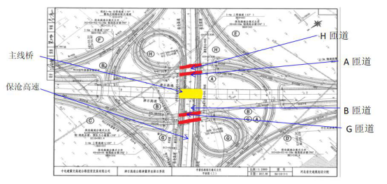 作為一個“高跨高”工程,其中有6條匝道順接保滄高速實行兩條高速公路車輛自由轉(zhuǎn)換,同時設(shè)計有5座橋梁上跨保滄高速,均采用60m跨度的鋼箱梁一次跨越,在保滄高速中隔帶內(nèi),未設(shè)置橋墩。擺在津石總包部面前有很多難題需要克服。如保滄高速交通流量大,斷交時間不足的問題;安全隱患高;賠償費用高;大縱坡,小半徑的問題;行政主管部門要求高等問題。